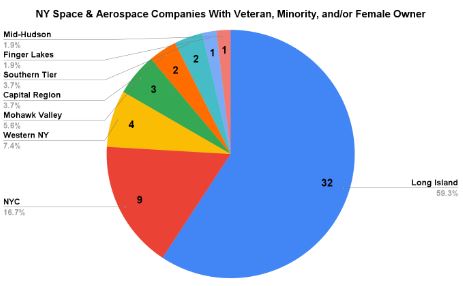 One of the major takeaways from these figures is the very low rate of Minority Ownership of space and aerospace companies in New York, even compared to Veteran or Woman owned company rates. These numbers are much lower than statewide demographic trends, regardless of which metric you compare against.
