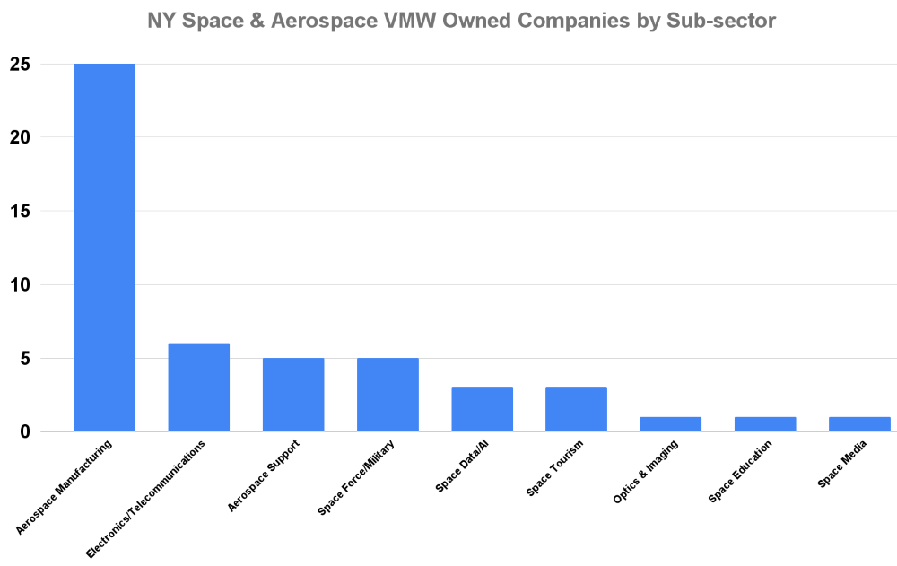 The goal of this analysis is to understand the current VMW ownership dynamics so that resources can be targeted and programming identified to create more pathways to ownership in New York’s space and aerospace sector. There are links to resources available for VMW owned companies at the end of this report.