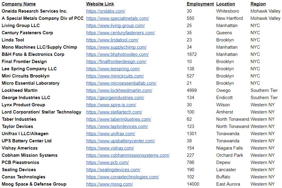 * 82 NASA affiliated companies in all 10 regions of that state, employing more than 20,000 New Yorkers.